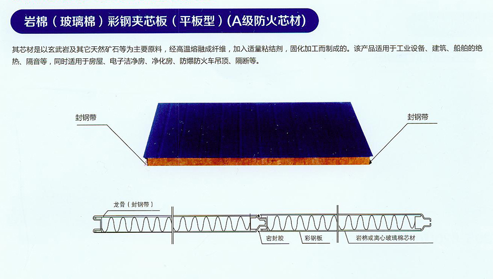 岩棉(玻璃棉)彩钢夹芯板(平板型)(A级防火芯材)