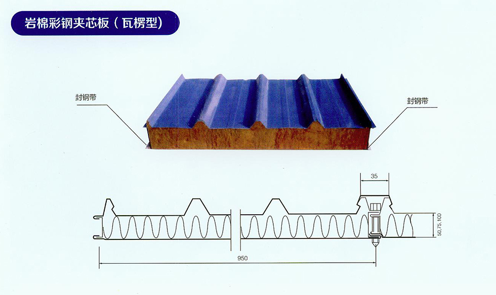 岩棉彩钢夹芯板(瓦楞型)